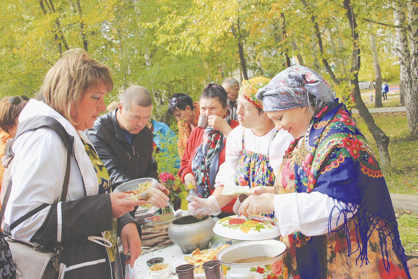 Как и в прошлом году, наибольший ажиотаж вызвала дегустация блюд национальных кухонь народов, проживающих в Змеиногорском районе. Каждый участник номинации «Рецепты от прабабушки» должен был приготовить любое блюдо, обязательно по старинному, забытому рецепту. Шедевры русской, армянской, марийской, узбекской, татарской, кавказской и других кухонь народов представили участники на суд публики. Молочный поросенок, кролик, запеченный в маринаде, украинские вареники, блины с различными начинками, кисели и компоты, каша с замечательным названием «Тыквенная Маня» и десятки других блюд пользовались большим спросом у змеиногорцев и гостей города. Пришедшие на фестиваль буквально «сметали» угощения в считанные минуты. «Не успели накрыть на стол, как все съели», — не скрывали своего удивления и радости участники фестиваля. Пришедшие могли не только попробовать все эти блюда, но и взять себе листочек с готовым рецептом. Так что все остались сыты и довольны.
